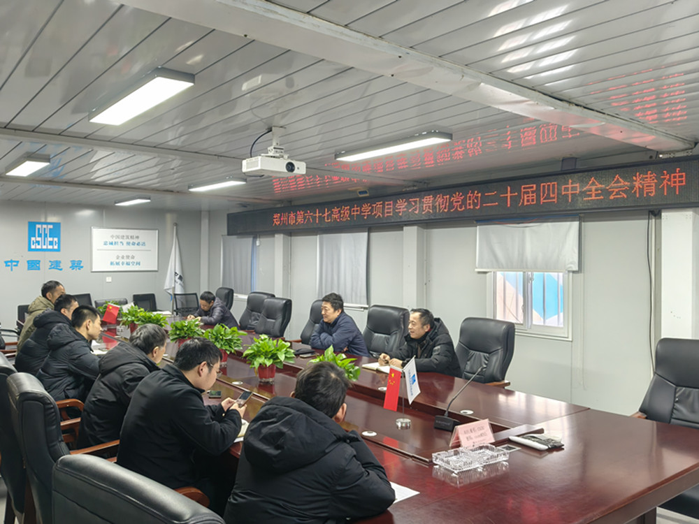 为深入学习贯彻党的二十届四中全会精神,引导项目人员切实把思想和行动统一到党中央决策部署上来。根据集团党委统一部署,12月18日,第六十七高级中学项目组织学习贯彻党的二十届四中全会精神,项目部总经理张祯栋主持并讲话。