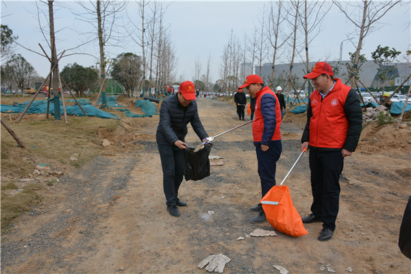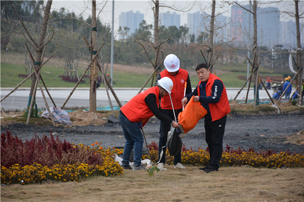 上午十时三十分,志愿服务活动开始后,华体会官方端网站登录入口-华体会(中国) 党委委员、副总经理、项目部总经理汪洋亲自带头参加活动,其他党员干部带头干,职工群众积极干,参建单位负责人志愿加入干,大家拿起工具、弯下腰去,捡起草地上的生活垃圾,集中放进现场放置的垃圾桶内;没有拿到工具的同志们也拿起简易垃圾袋,将捡到的生活垃圾放进垃圾袋盛满后再放进垃圾桶内。一时间,党徽熠熠、爱心闪闪、干劲满满,不到一个小时时间,约20人的志愿服务队伍完成了近20000平米区域的垃圾清理任务,景观施工现场面貌大为改观。