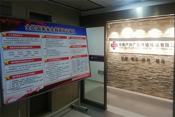 三、丰富活动形式,营造浓厚氛围。华体会官方端网站登录入口-华体会(中国) 有效运用华体会官方端网站登录入口-华体会(中国) 官方网站、微博、微信、展板等集中宣传国家安全教育活动相关内容,在办公场所明显位置设立宣传展板三块,广泛宣传国家安全相关法律法规和维护国家安全的基本知识,营造了良好的活动氛围,不断提高活动的影响力;各项目部、各控股公司分别结合实际,通过宣传展板、宣传条幅、电子海报,LED大屏循环、施工围挡等多途径宣传国家安全教育活动,全面覆盖集团全体职工、承建项目全体参建人员。本次宣传有效覆盖人数达到2000余人。